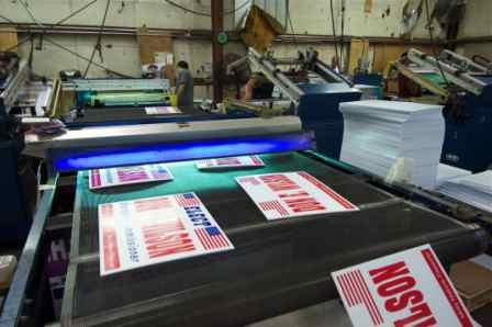 door hangers, buttons, shirts, hats, pens, signs, wires, banners, brochures,