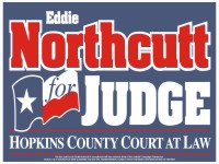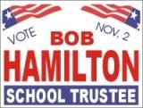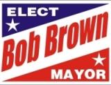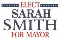 signs generally contain the name of the candidate, their party, and the
